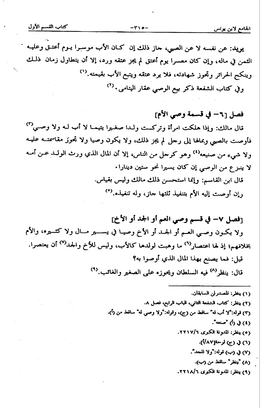 [فصل 7 - في قسم وصي العم أو الجد أو الأخ]