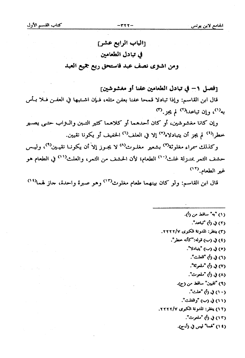 [فصل 1 - في تبادل الطعامين عفنا أو مغشوشين]