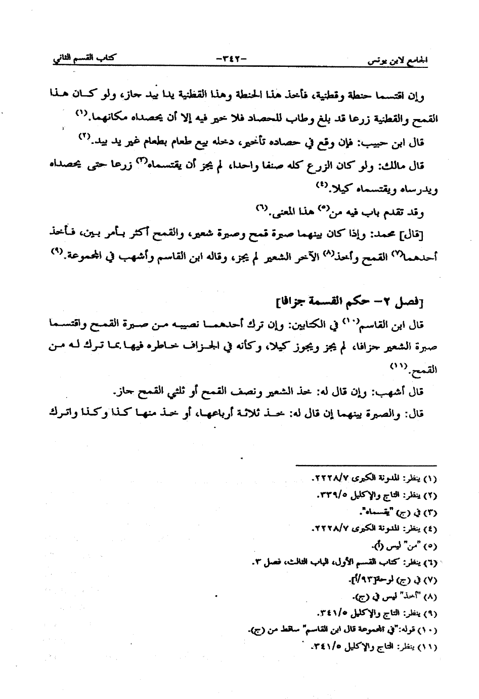 قال ابن القاسم في الكتابين: وإن ترك أحدهما نصيبه من صبة القمح واقتسما