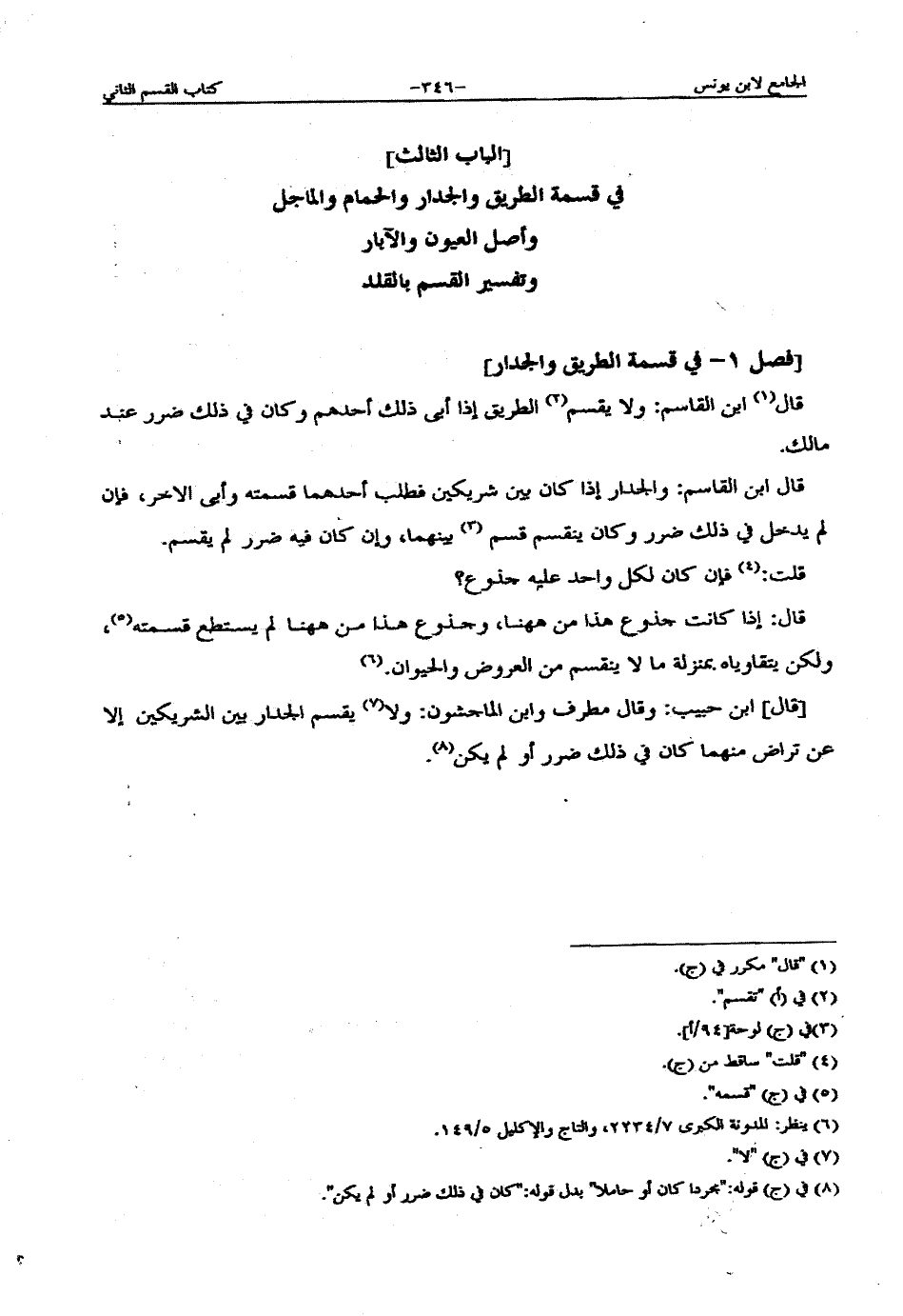 في قسمة الطريق والجدار والحمام والماجل]