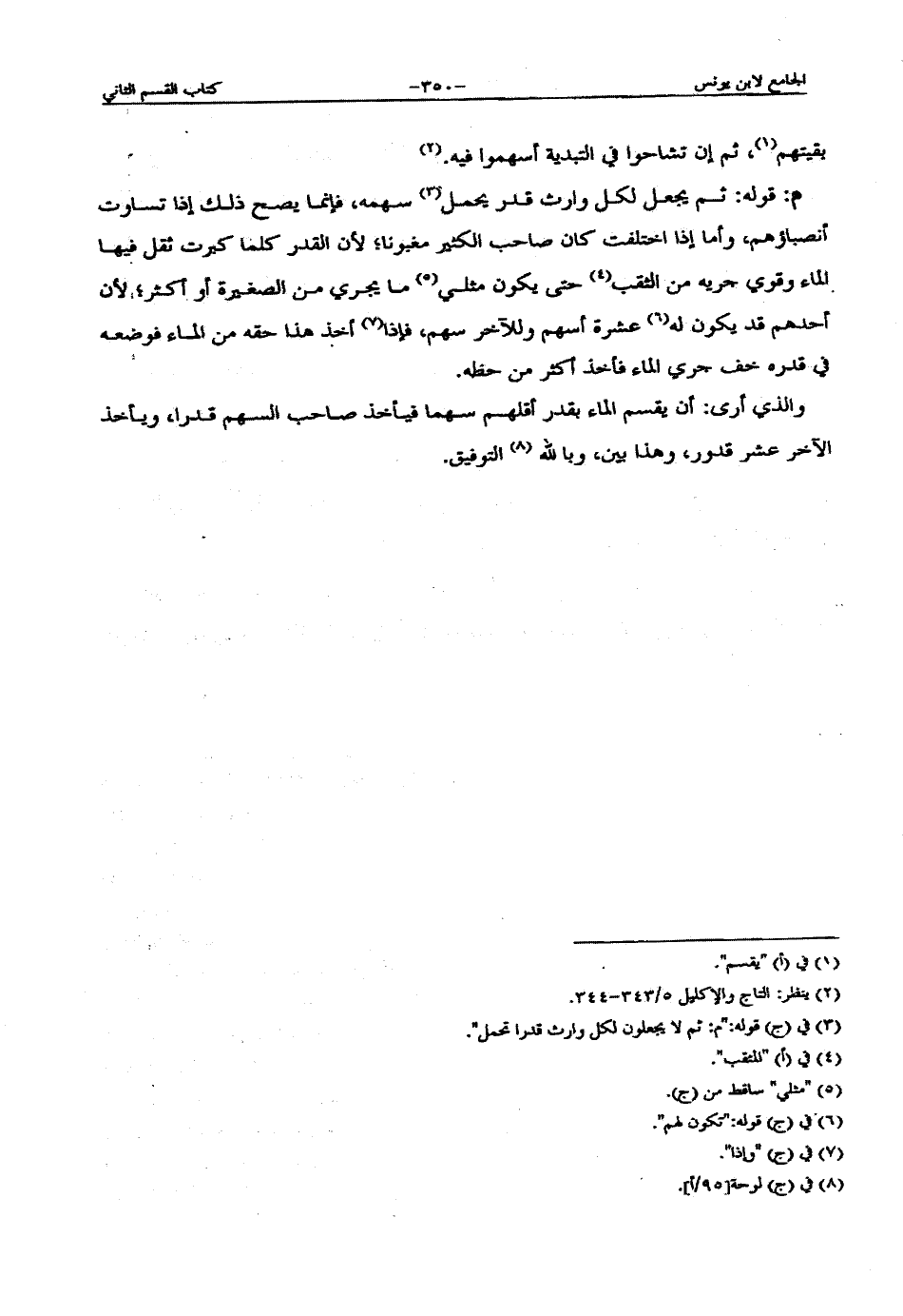 أحدهم قد يكون له عشرة أسهم وللآخر سهم, فإذا أخذ هذا حقه من الماء فوضعه