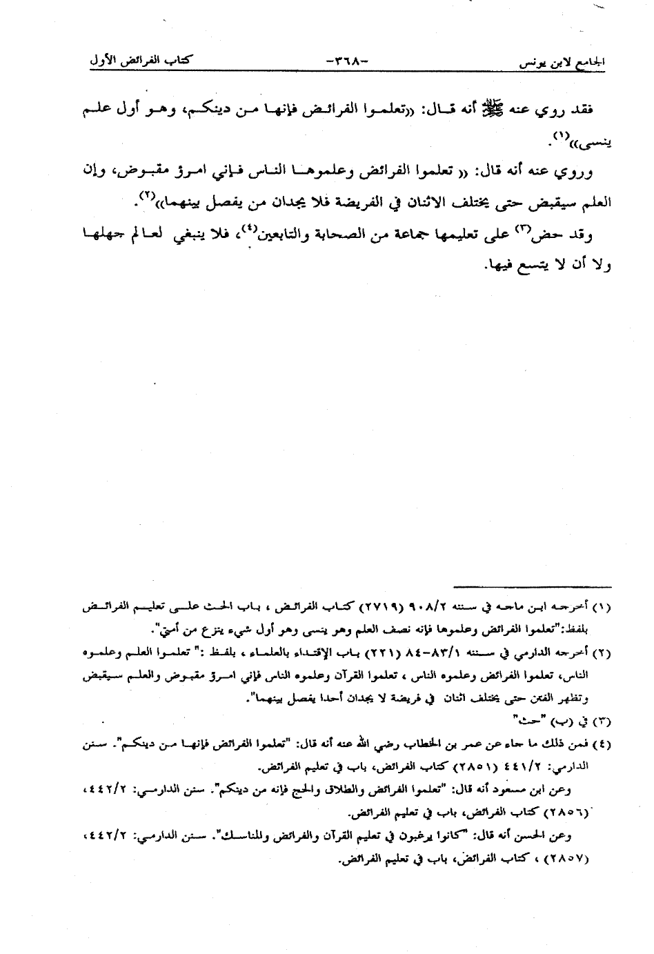 فقد روي عنه (صلى الله عليه وسلم) أنه قال: «تعلموا الفرائض فإنها من دينكم، وأول علم ينسى».