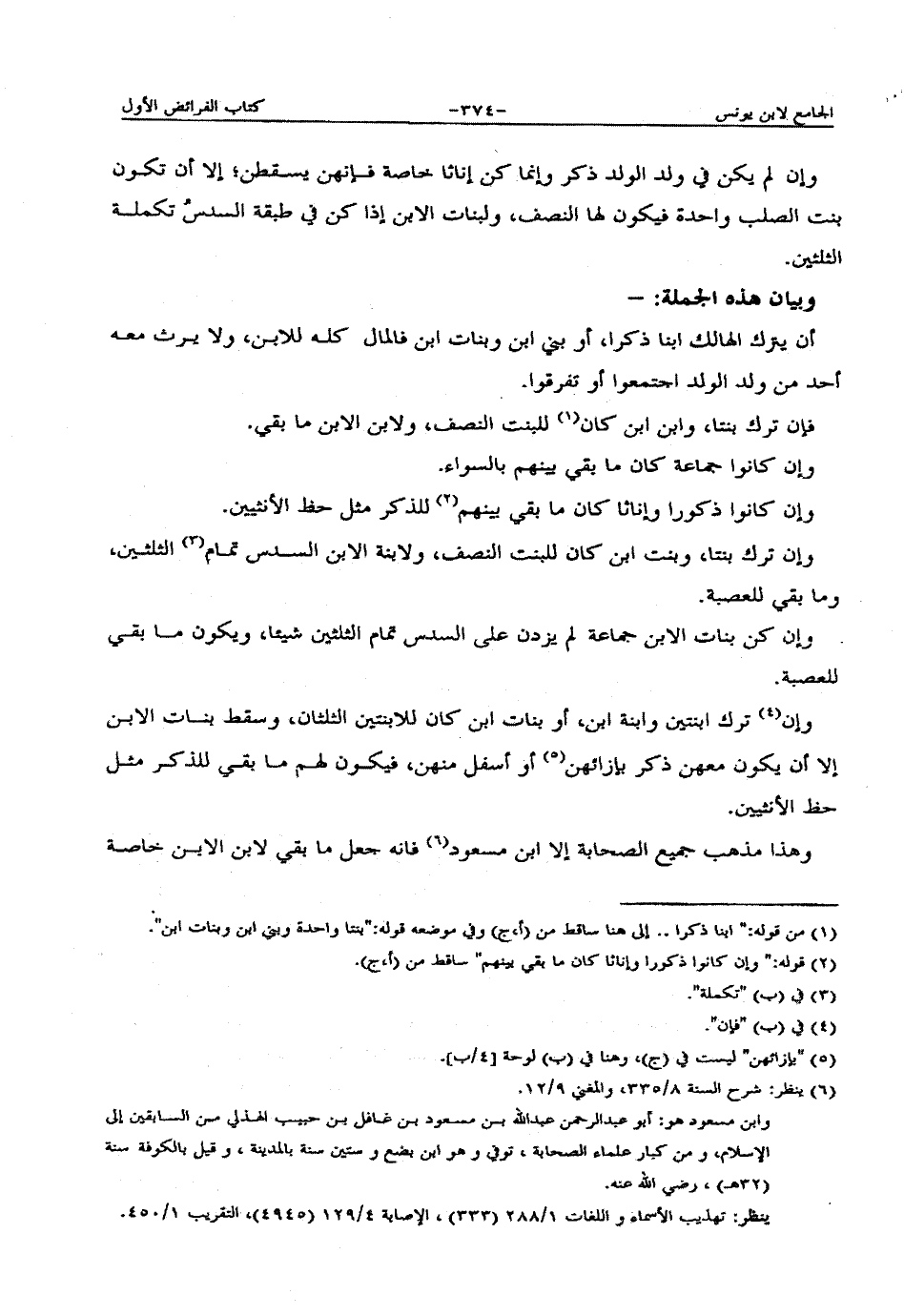 وما ذهب جميع الصحابة إلا ابن مسعود فأنه جعل ما بقي لابن الابن خاصة