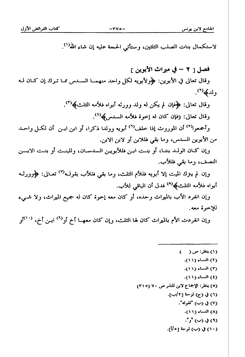 وقال تعالى: {فَإِنْ لَمْ يَكُنْ لَهُ وَلَدٌ وَوَرِثَه أَبَوَاهُ فَلِأُمِّهِ الثُّلُثُ}.