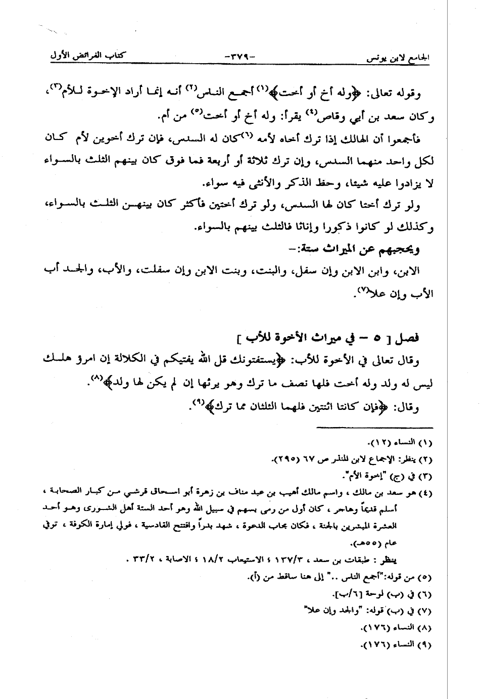 وقال تعالى في الأخوة للأب: {يَسْتَفْتُونَكَ قُلِ اللَّهُ يُفْتِيكُمْ فِي الْكَلالَةِ إِنْ امْرُؤٌ هَلَكَ لَيْسَ لَهُ وَلَدٌ وَلَهُ أُخْتٌ فَلَهَا نِصْفُ مَا تَرَكَ وَهُوَ يَرِثُهَا إِنْ لَمْ يَكُنْ لَهَا وَلَدٌ}.