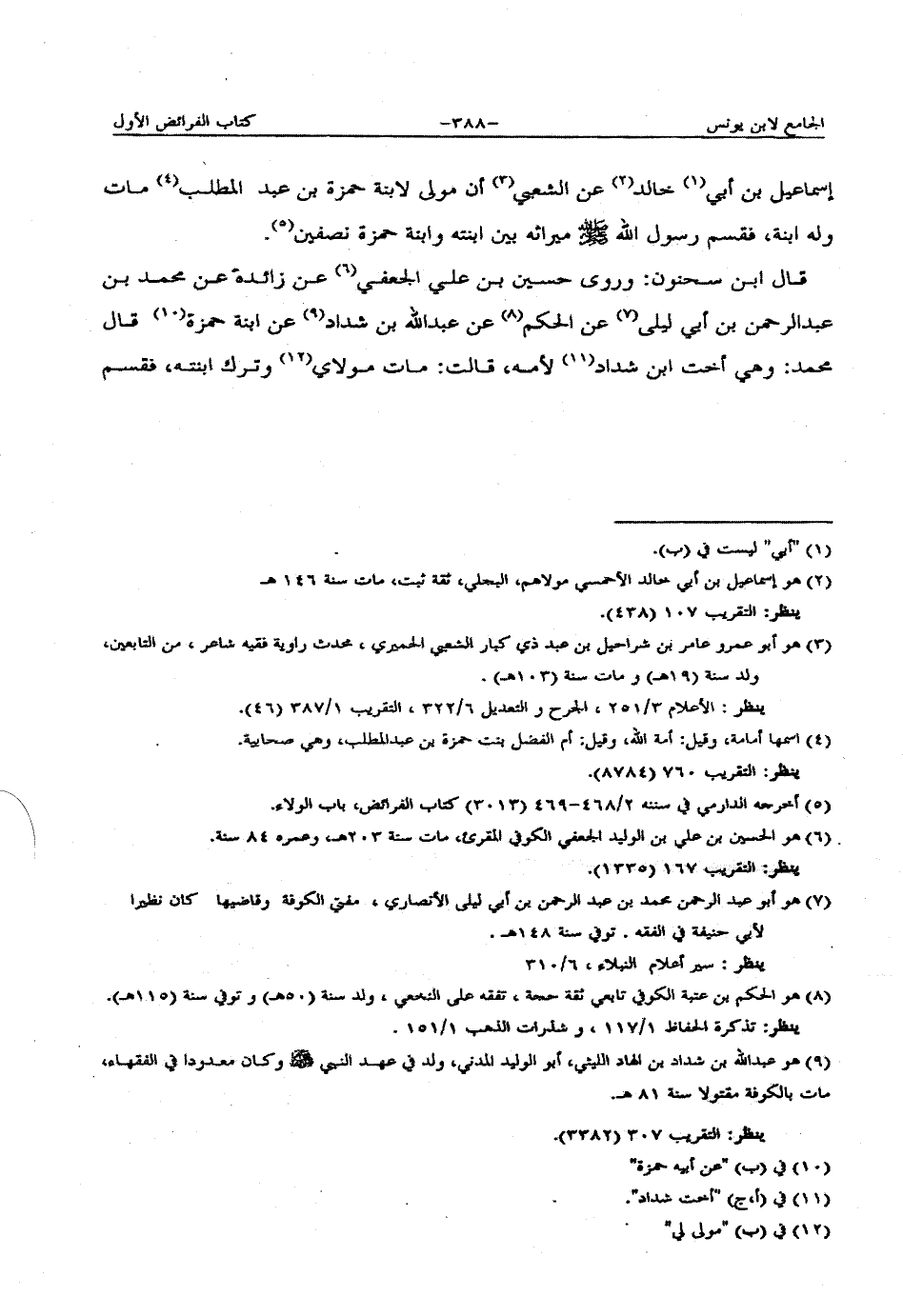 قال ابن سحنون: وروى حسين بن علي الجعفي هن زائدة عن محمد بن عبد الرحمن بن أبي ليلى عن الحكم عن عبد الله بن شداد عن ابنة حمزة قال محمد: وهي أخت ابن شداد لأمه، قالت: مات مولاي وترك ابنته، فقسم