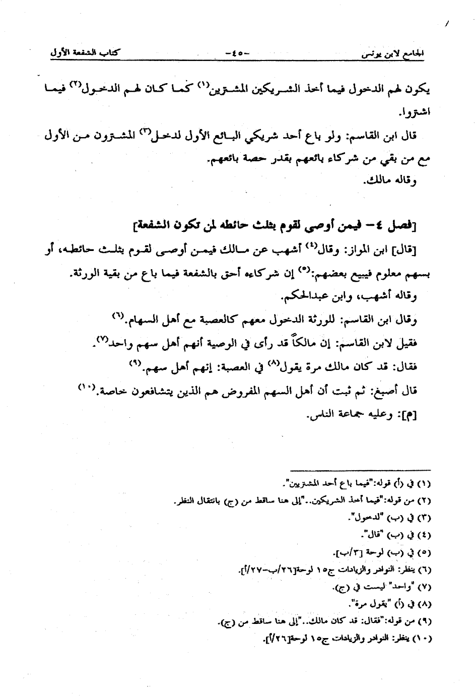 وكان من حجته: قول مالك في الرجل يوصي ثلث حائطه لنفر، فيبيع بعضهم: أن بقية من أوصى له أحق بالشفعة من سائر أهل الحائط.