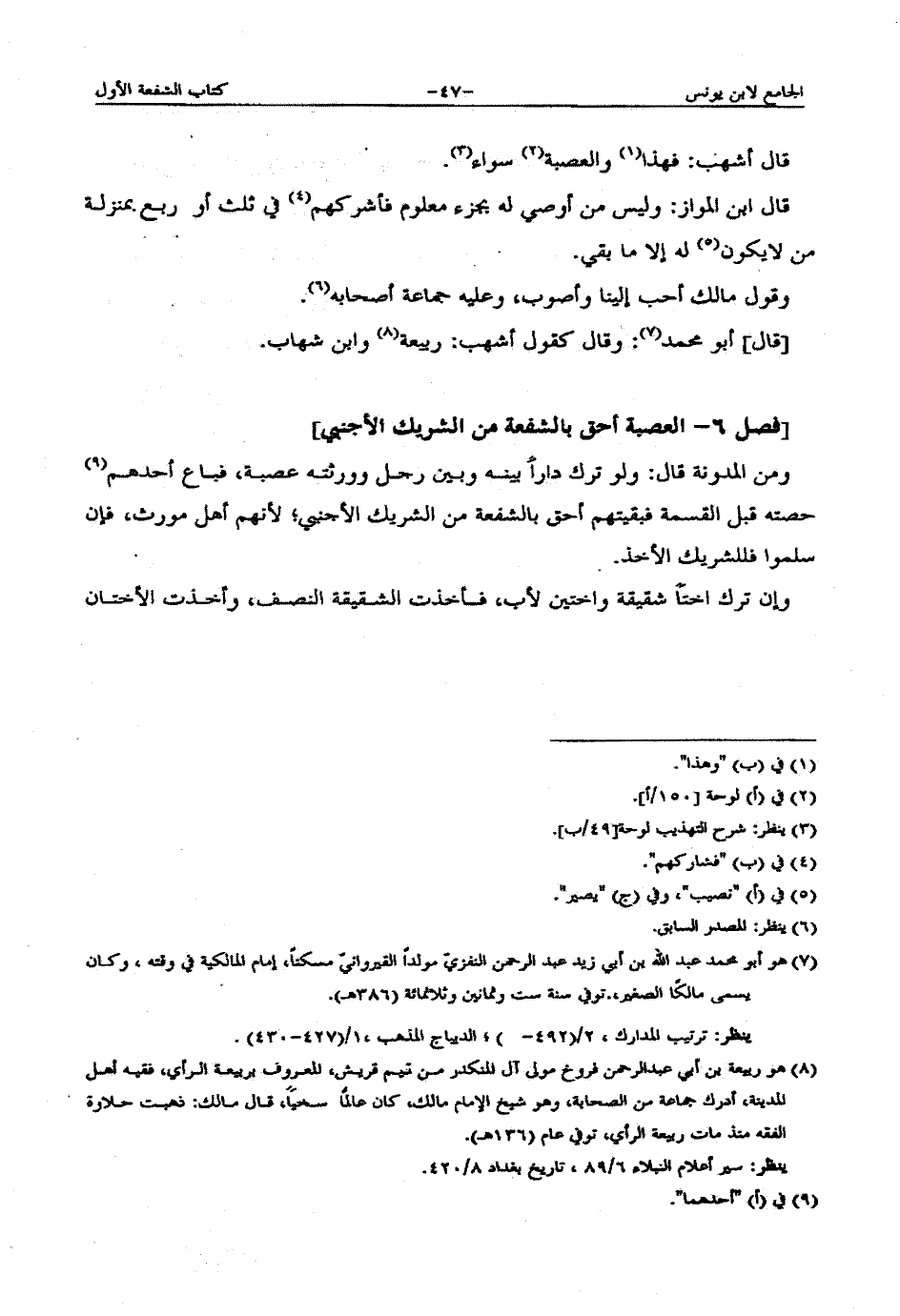 [قال] ابن المواز: وقال أشهب: لا تدخل معها الشقيقة، والأخت للأب أولى، وإن باعت الشقيقة فالتي للأب أحق من العصبة، وإن باع العصبة فهن كلهن في الشفعة سواء.