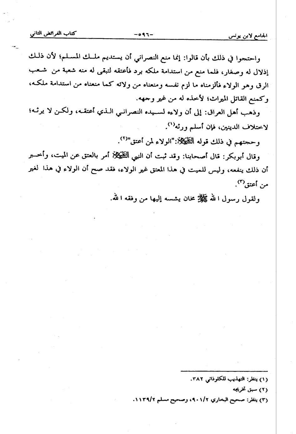 واحتجوا في ذلك بأن قالوا: إنما منع النصراني أن يستديم ملك المسلم؛ لأن ذلك إذلال له وصغار، فلما منع من استدامة ملكه برد فأعتقه لتبقى له منه شعبة من شعب الرق وهو الولاء فألزمناه ما لزم نفسه ومنعناه من ولائه كما منعناه من استدامة ملكه، وكمنع القاتل الميراث؛ لأخذه له من غير وجهه.
