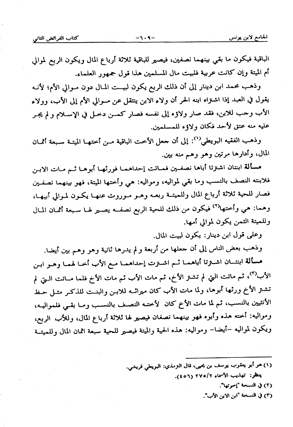 وذهب الفقيه البويطي: إلى أن جعل الأخت الباقية من أختها الميتة سبعة أثمان المال، وأدارها مرتين وهو وهم منه بين.