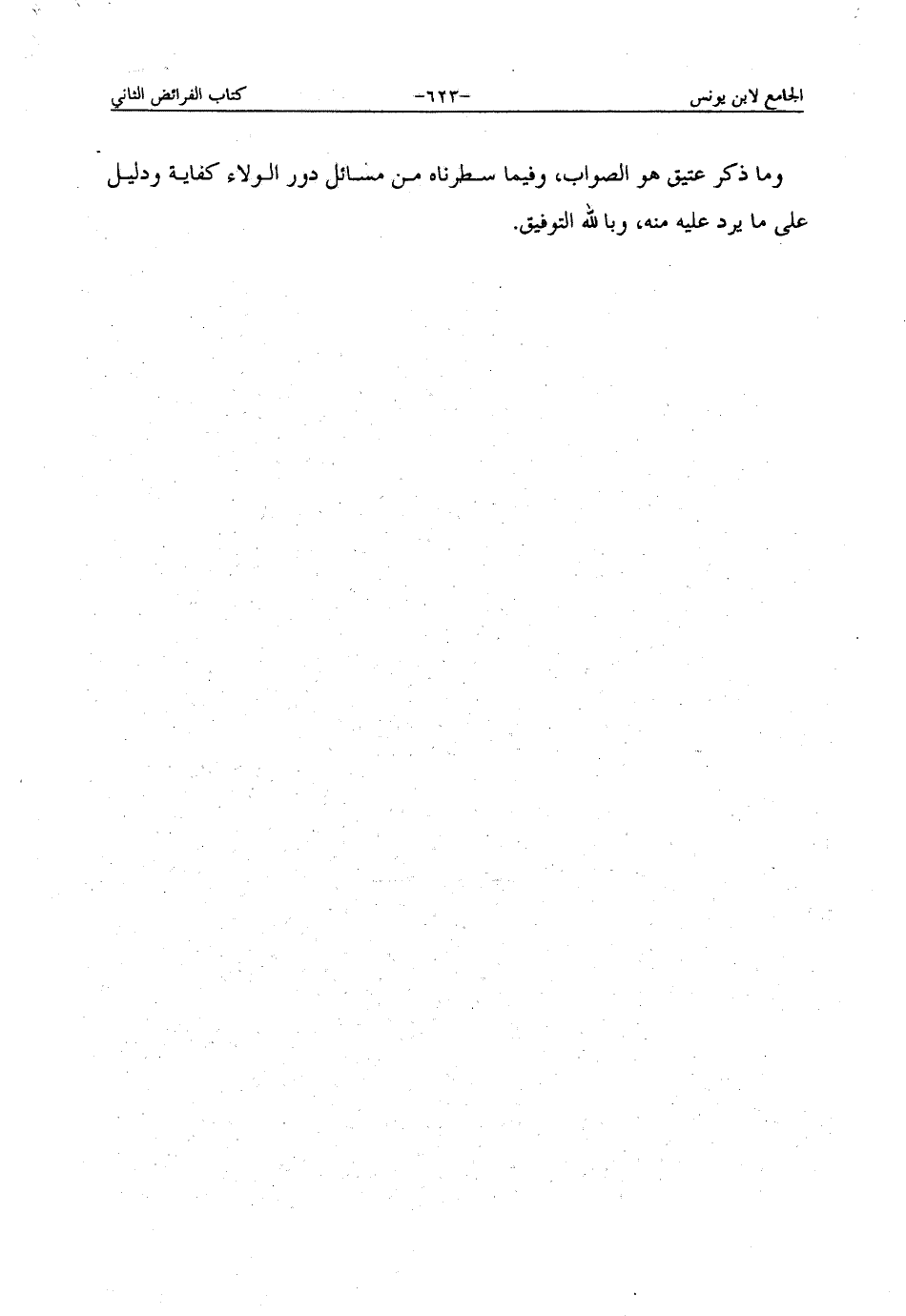 وما ذكر عتيق هو الصواب، وفيما سطرناه من مسائل دور الولاء كفاية ودليل على ما يرد عليه منه، وبالله التوفيق.