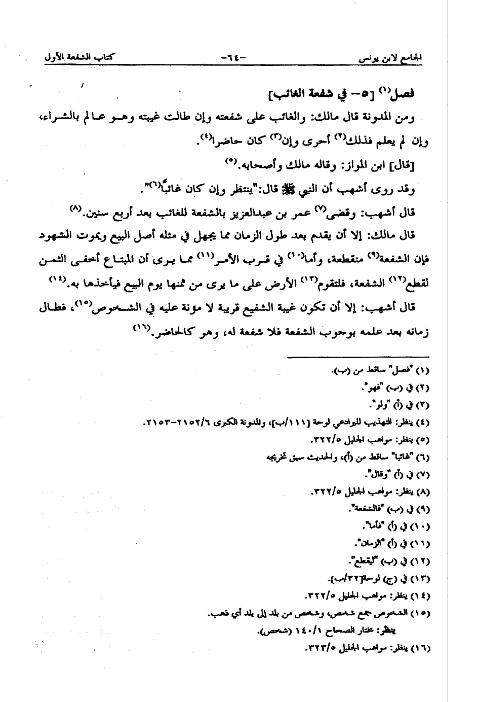 [فصل 6 - في شفعة المرأة والضعيف والمريض ومن لا يستطيع النهوض به]