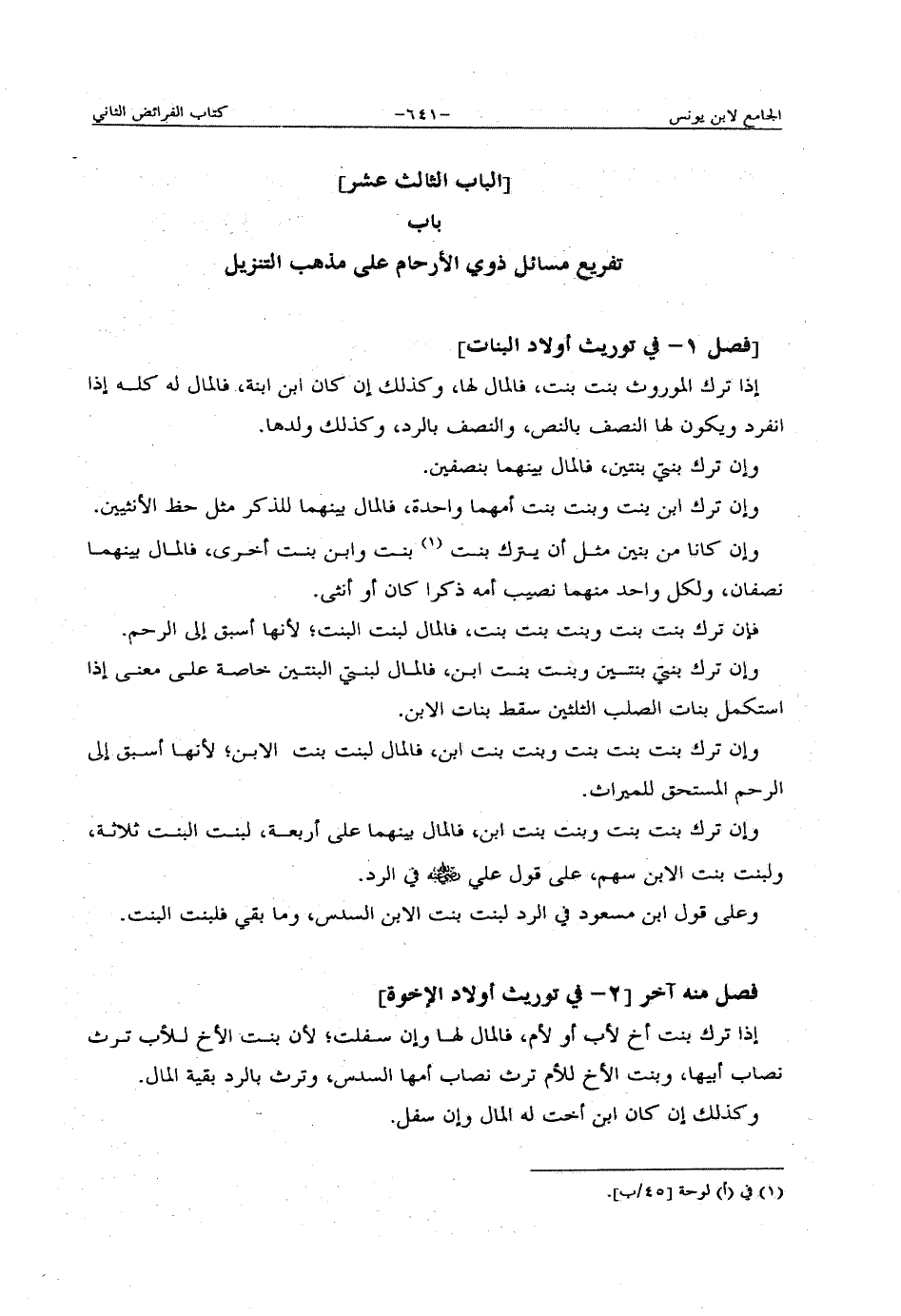 تفريع مسائل ذوي الأرحام على مذهب التنزيل