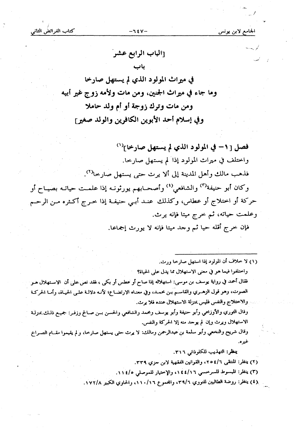 واختلف في ميراث المولود إذا لم يستهل صارخاً.