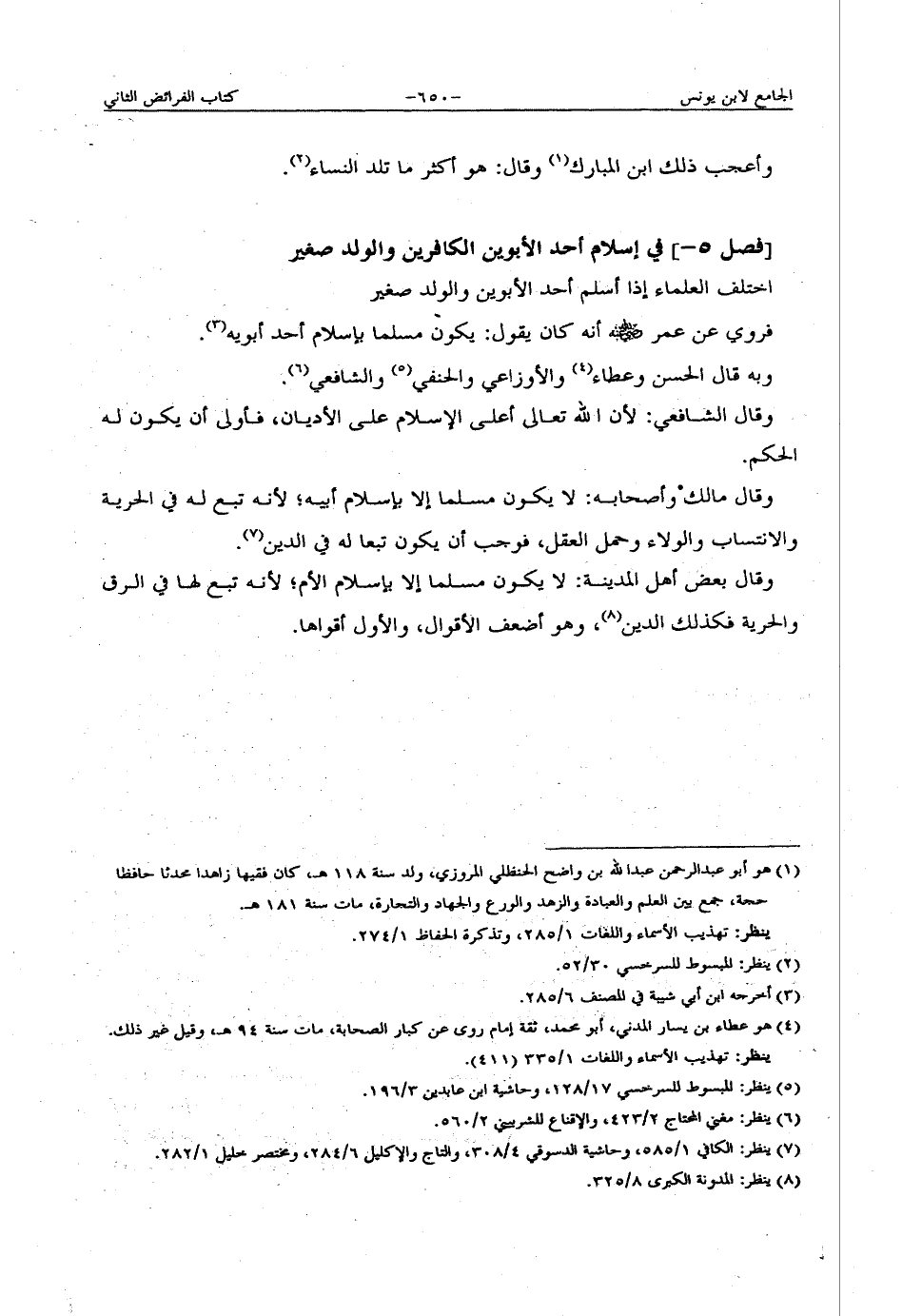 [فصل 5 -] في إسلام أحد الأبوين الكافرين والولد صغير