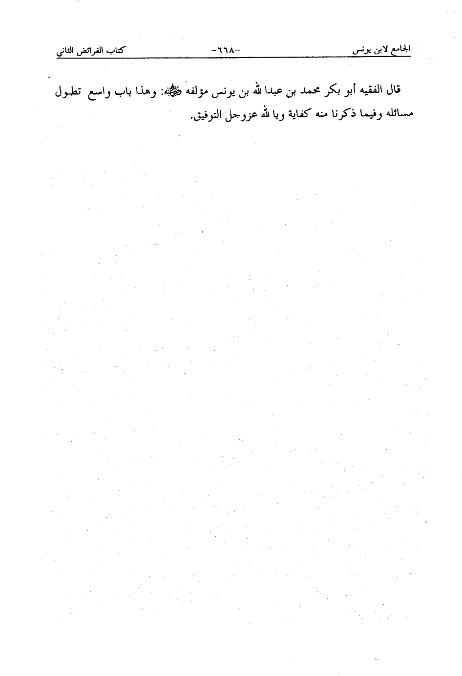 قال الفقيه أبو بكر محمد بن عبد الله بن يونس مؤلفه -رضي الله عنه-: وهذا باب واسع تطول مسائله وفيما ذكرنا منه كفاية وبالله عز وجل التوفيق.