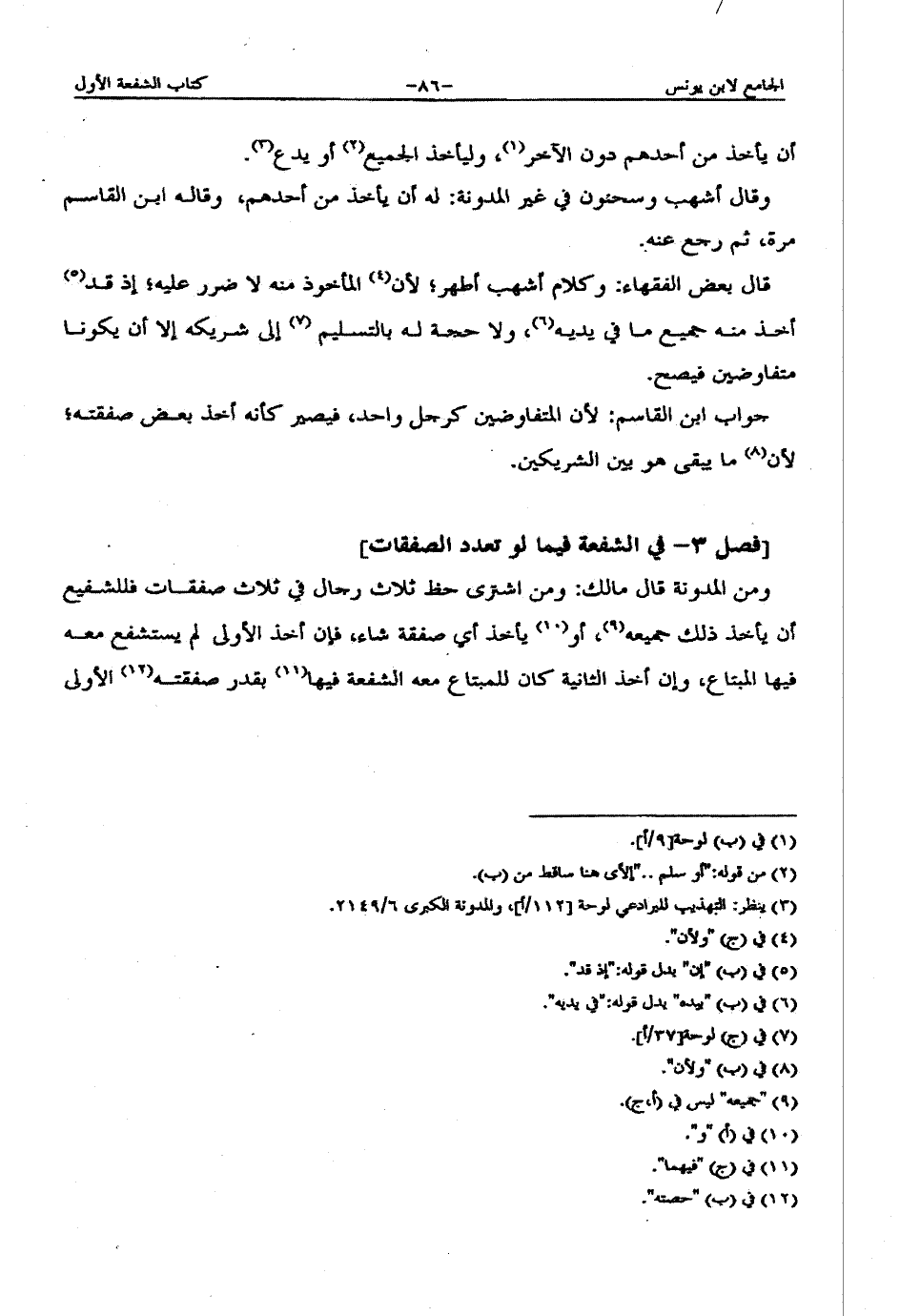 فقط، وإن أخذ الثانية خاصة كان للمبتاع معه الشفعة فيها بقدر صفقته الأولى فقط، وإن أخذ الثالثة خاصة كان للمبتاع فيها بالأولى والثانية.
