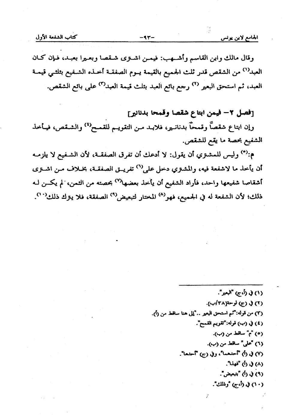 وفي تسليمه الشفعة قبل الشراء أو بعده على مال أو غير مال