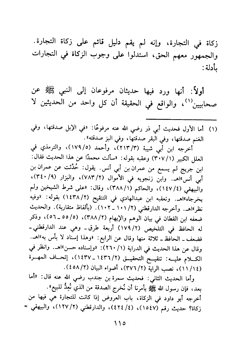 (¬1) أما الأول فحديث أبي ذر رضي الله عنه مرفوعًا: "في الإبل صدقتها، وفي الغنم صدقتها، وفي البقر صدقتها، وفي البرّ صدقته".