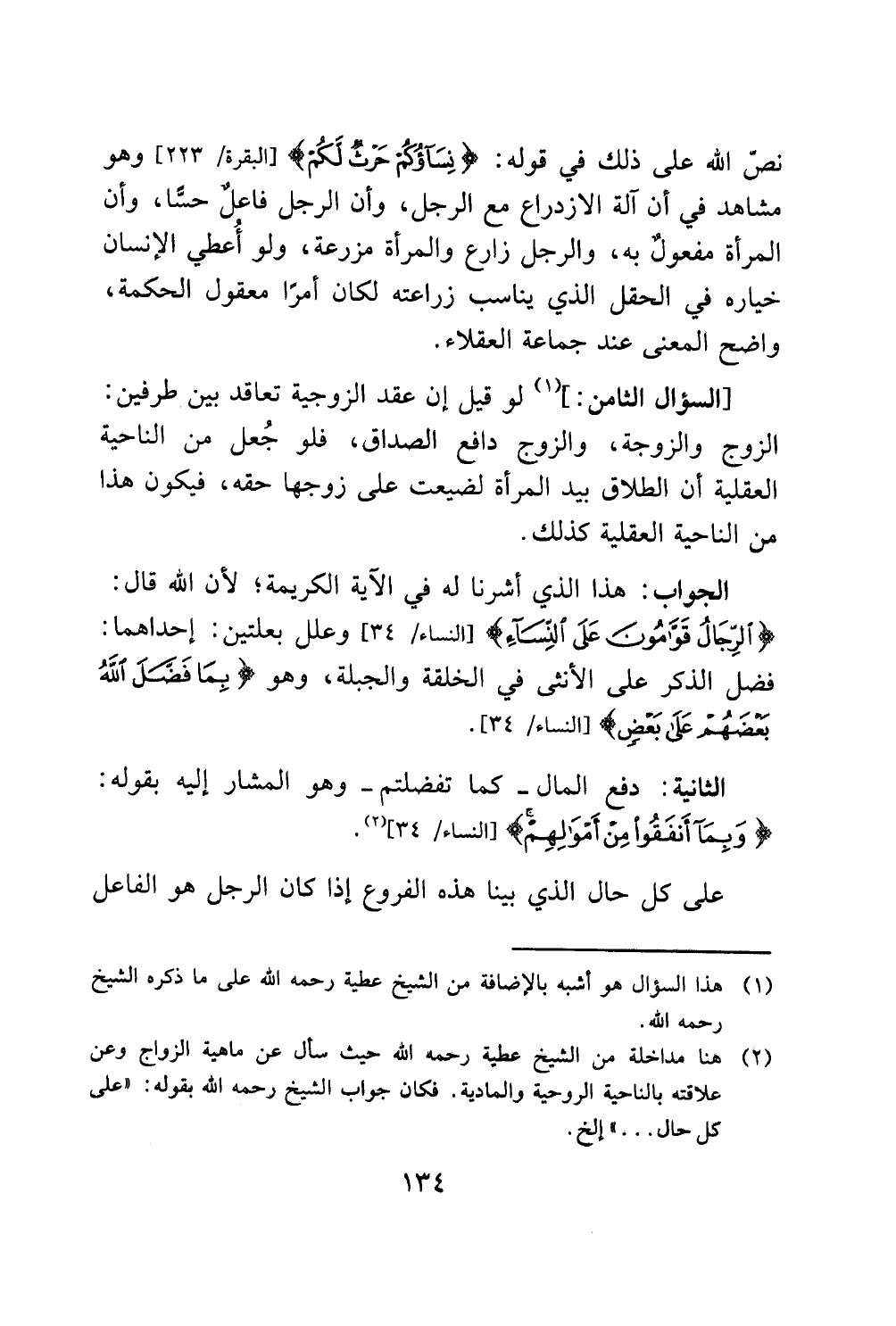(¬2) هنا مداخلة من الشيخ عطية رحمه الله حيث سأل عن ماهية الزواج وعن علاقته بالناحية الروحية والمادية. فكان جواب الشيخ رحمه الله بقوله: "على كل حال ... " إلخ.