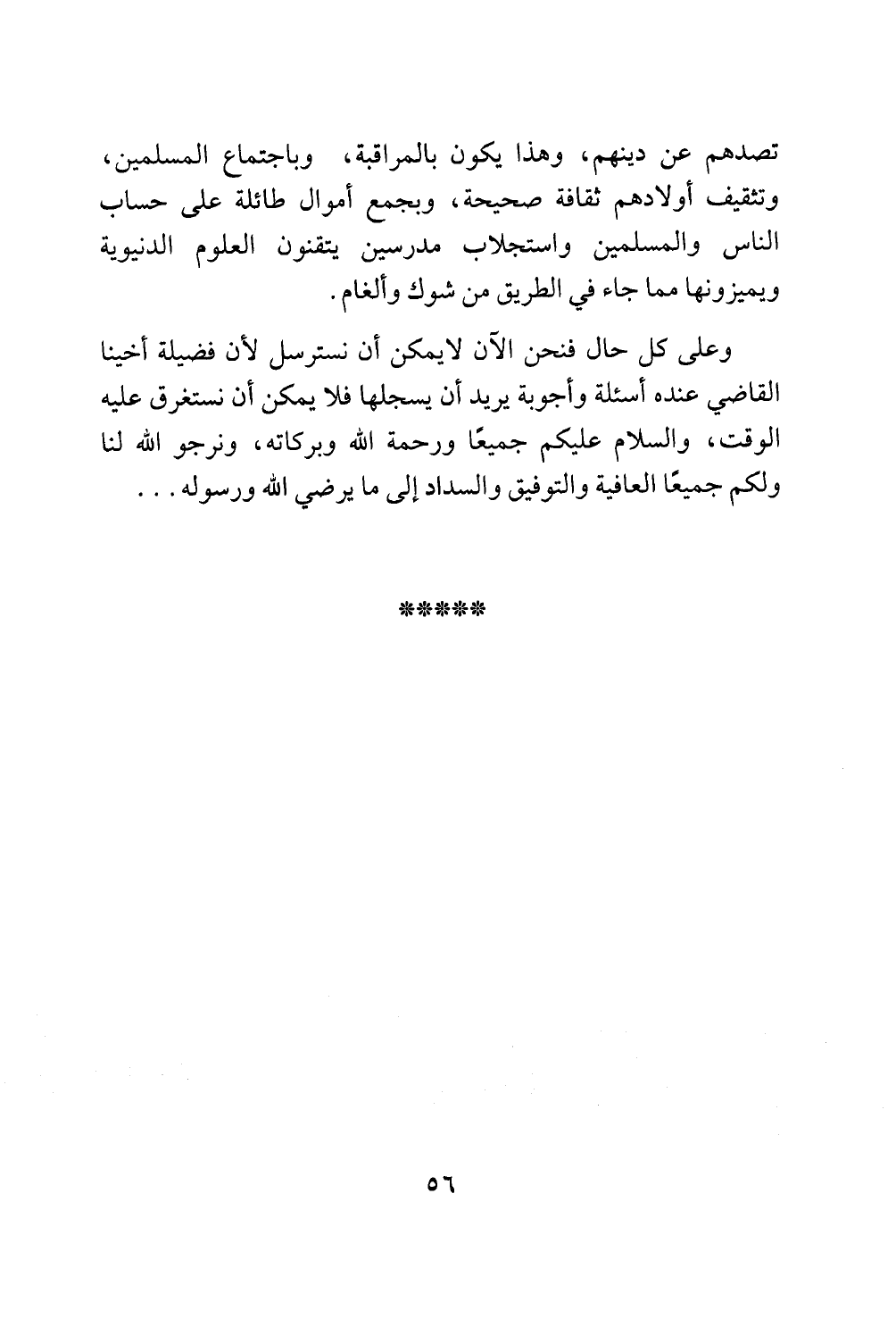 وعلى كل حال فنحن الآن لا يمكن أن نسترسل لأن فضيلة أخينا القاضي عنده أسئلة وأجوبة يريد أن يسجلها فلا يمكن أن نستغرق عليه الوقت، والسلام عليكم جميعًا ورحمة الله وبركاته، ونرجو الله لنا ولكم جميعًا العافية والتوفيق والسداد إلى ما يرضي الله ورسوله ...