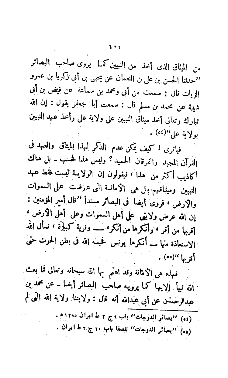 (¬1) "بصائر الدرجات" باب9 ج2 ط إيران 1285هـ