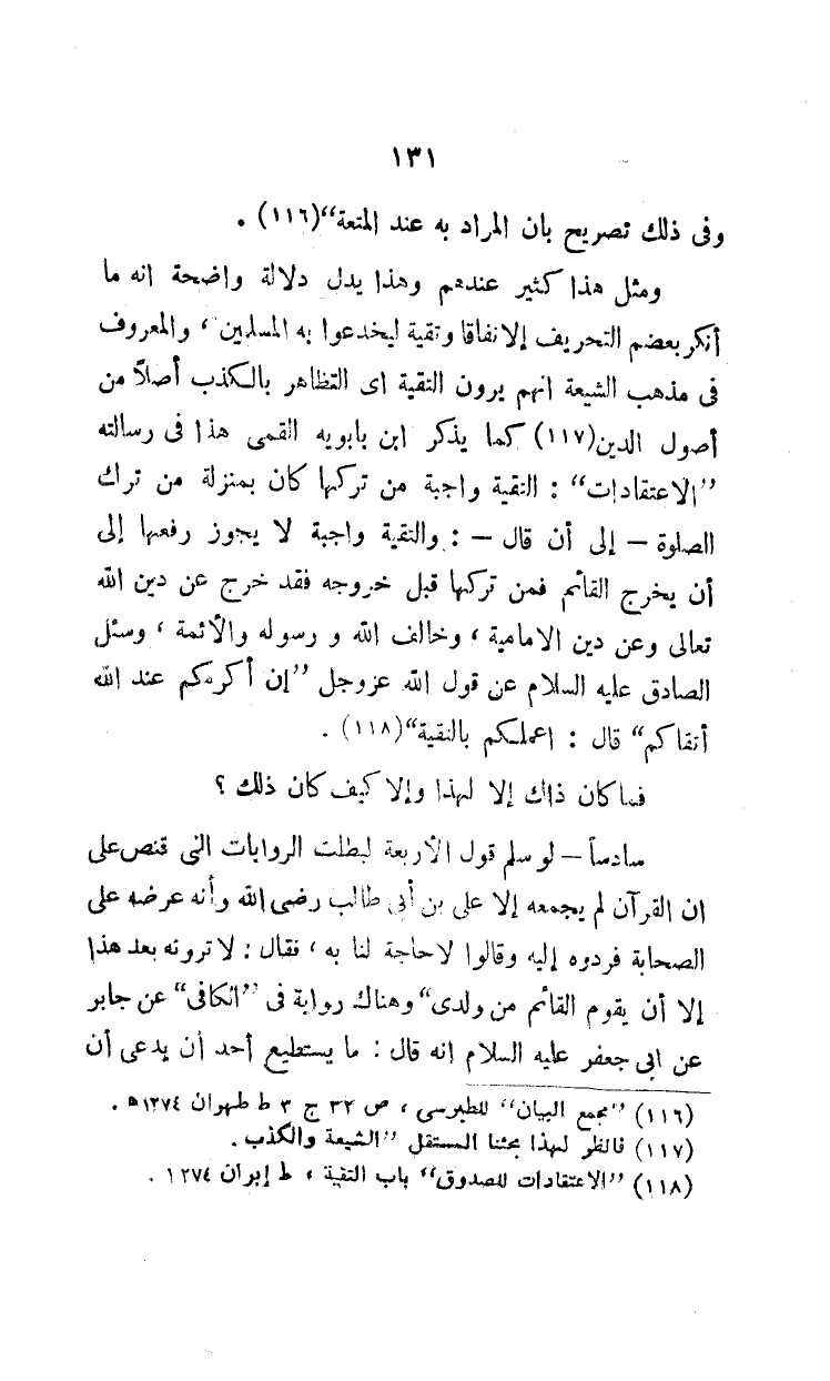 (¬3) "الاعتقادات للصدوق" باب التقية، ص إيران 1274