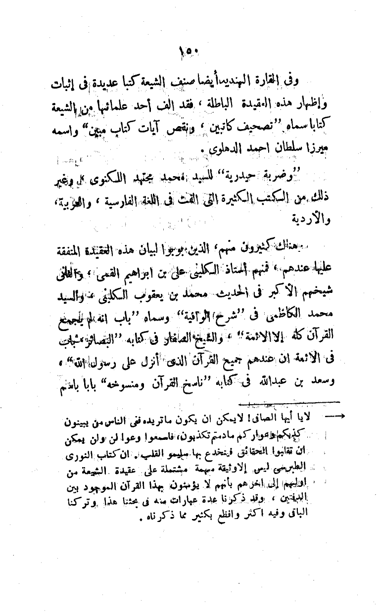 وفي القارة الهندية أيضاً صنف الشيعة كتباً عديدة في إثبات وإظهار هذه العقيدة الباطلة، فقد ألف أحد علمائها من الشيعة كتاباً سماه "تصحيف كاتبين، ونقص آيات كتاب مبين" واسمه ميرزا سلطان أحمد الدهلوي.