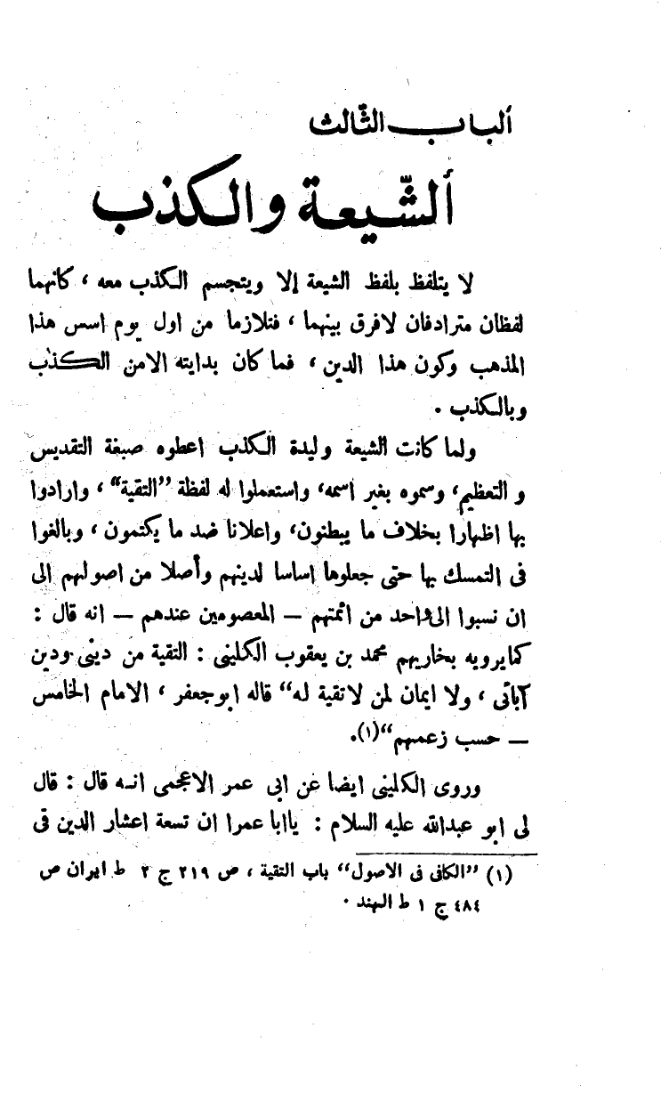 (¬1) "الكافي في الأصول" باب التقية، ص 219 ج2 ط إيران ص484 ج1 ط الهند