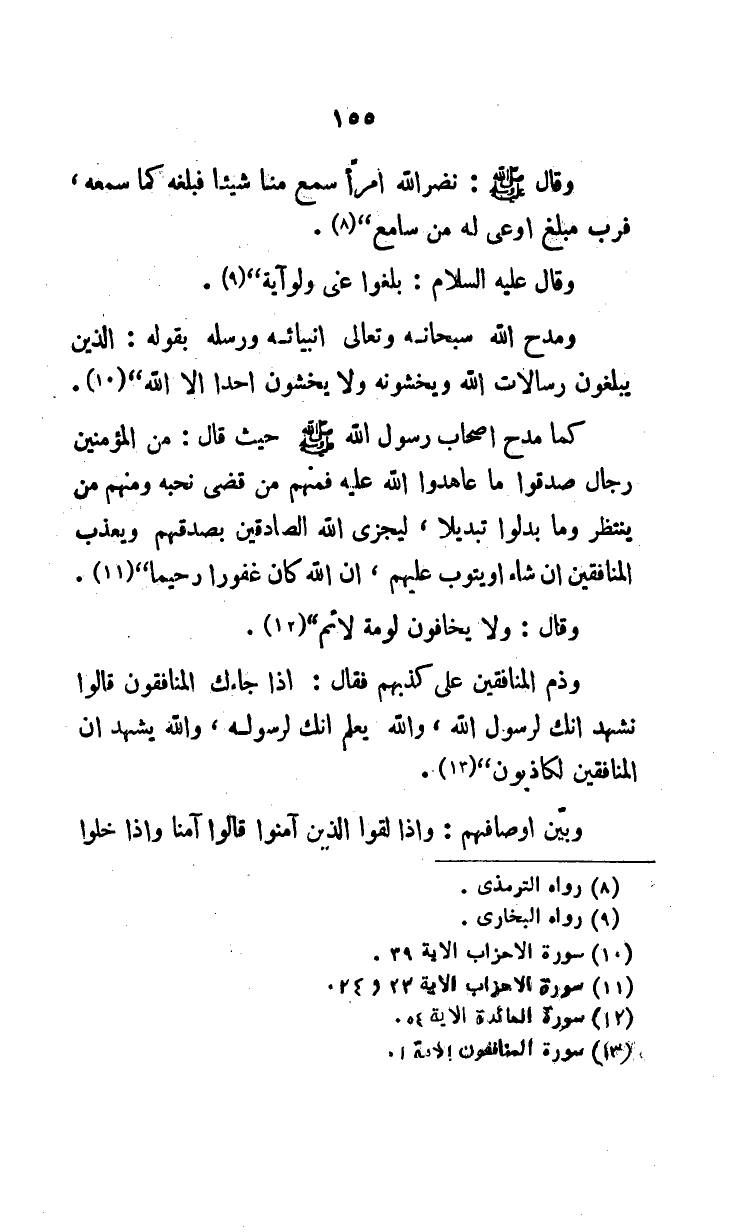 ومدح الله سبحانه وتعالى أنبيائه ورسله بقوله: الذين يبلغون رسالات الله ويخشون ولا يخشون أحداً إلا الله" (¬3).