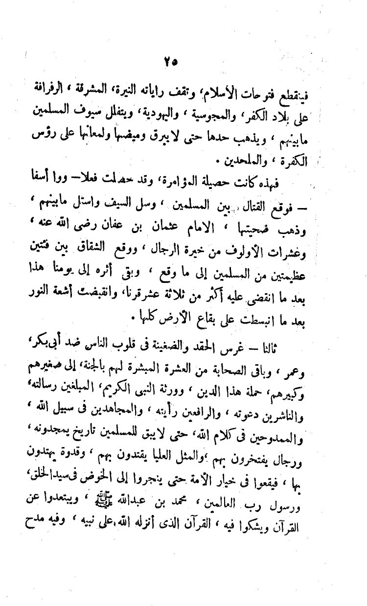 فينقطع فتوحات الإسلام، وتقف راياته النيرة المشرقة، الرفرافة على بلاد الكفر، والمجوسية، واليهودية، ويتغلل سيوف المسلمين ما بينهم، ويذهب حدها حتى لا يبرق وميضها ولمعانها على رؤوس الكفرة، والملحدين.