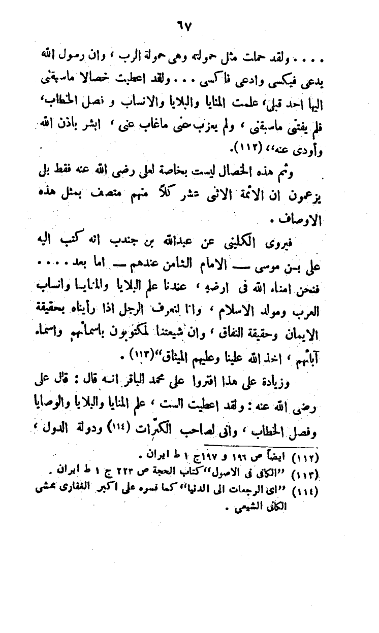 وثم هذه الخصال ليست بخاصة لعلي رضي الله عنه فقط بل يزعمون أن الأئمة الاثني عشر كلاً منهم متصف بمثل هذه الأوصاف.