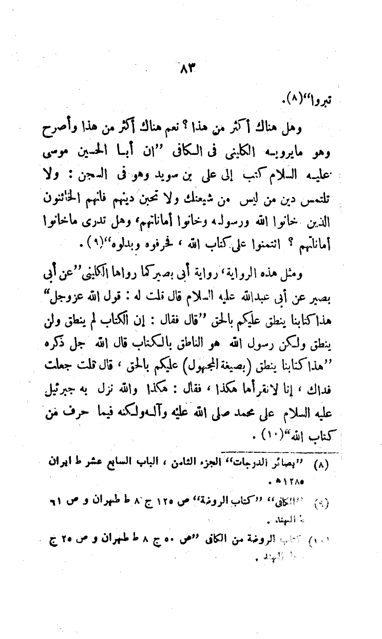 (¬3) كتاب "الروضة من الكافي" ص50 ج8 ط طهران وص25 ج1 ط الهند