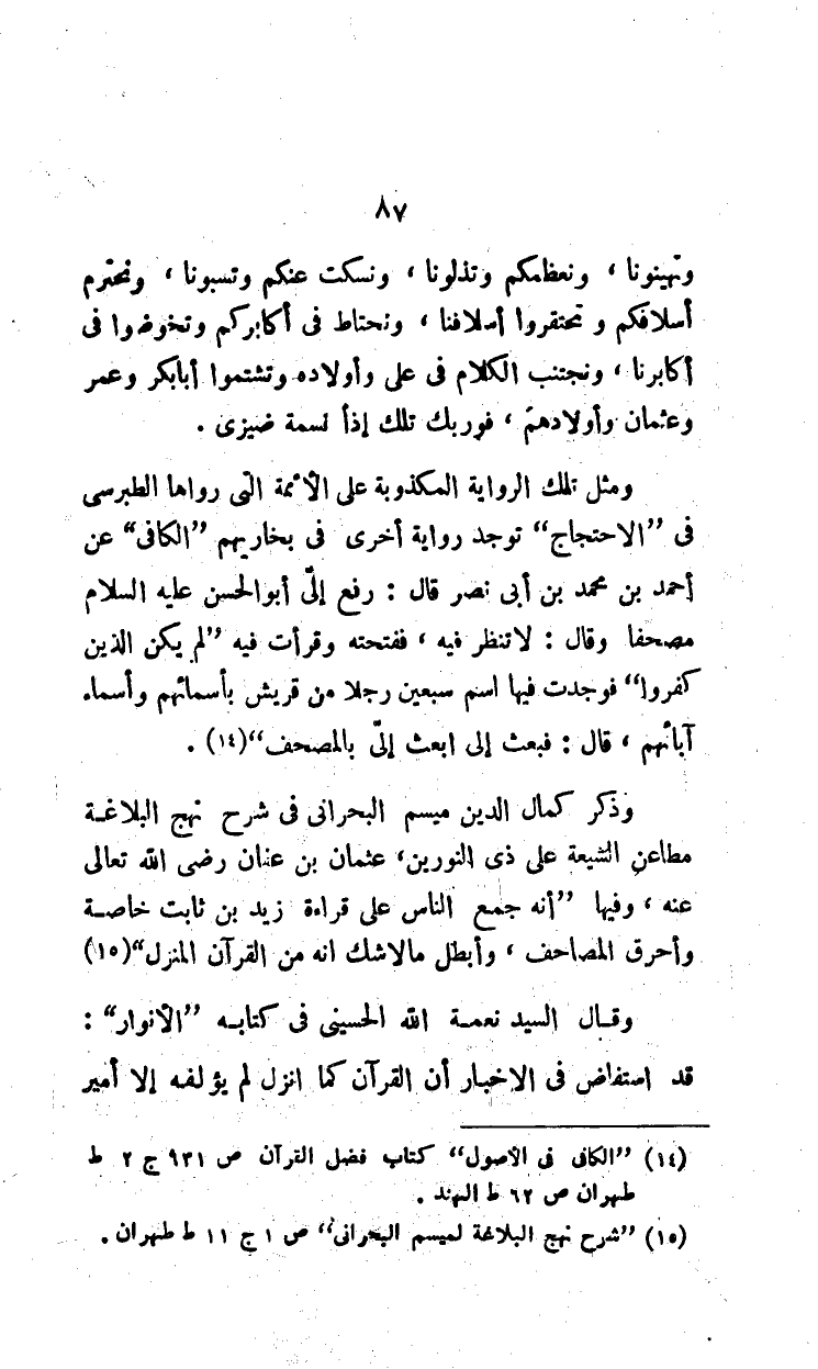 (¬1) "الكافي في الأصول" كتاب فضل القرآن ص631 ج2 ط طهران ص62 ط الهند