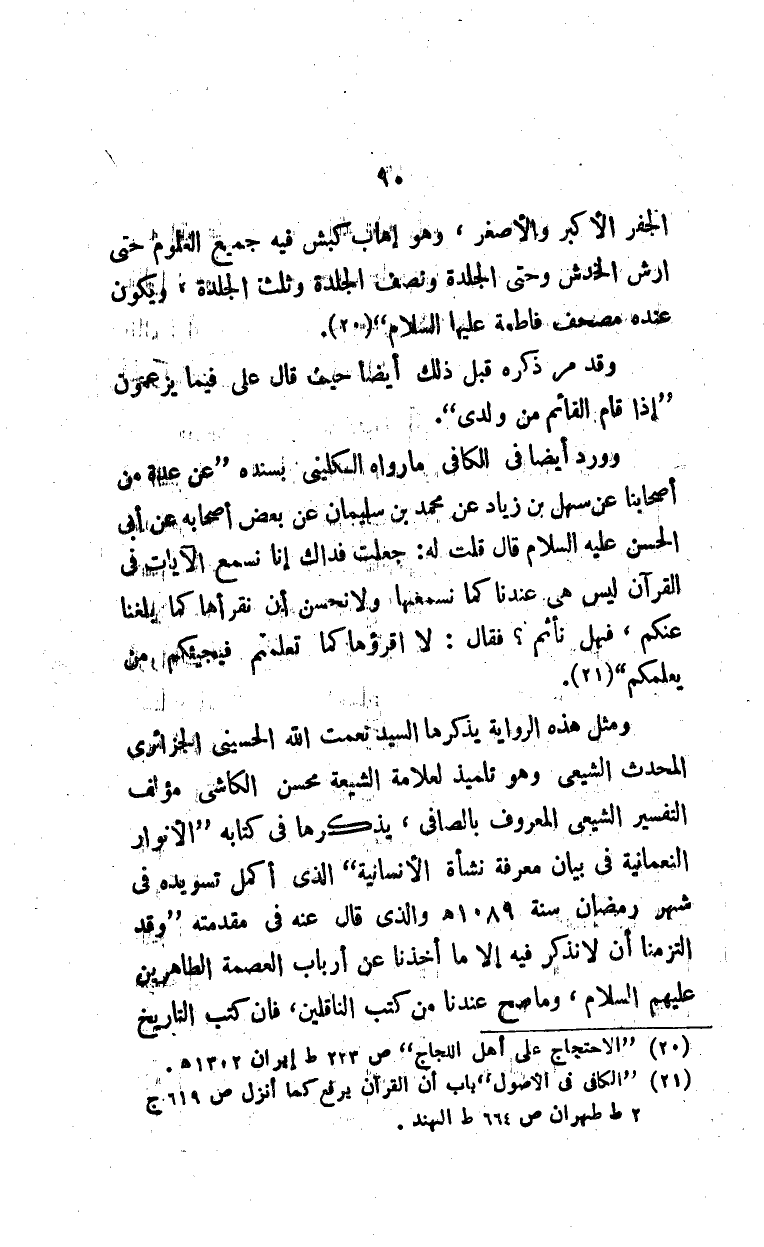 (¬2) "الكافي في الأصول" باب أن القرآن يرفع كما أنزل ص619 ج2 ط طهران ص664 ط الهند
