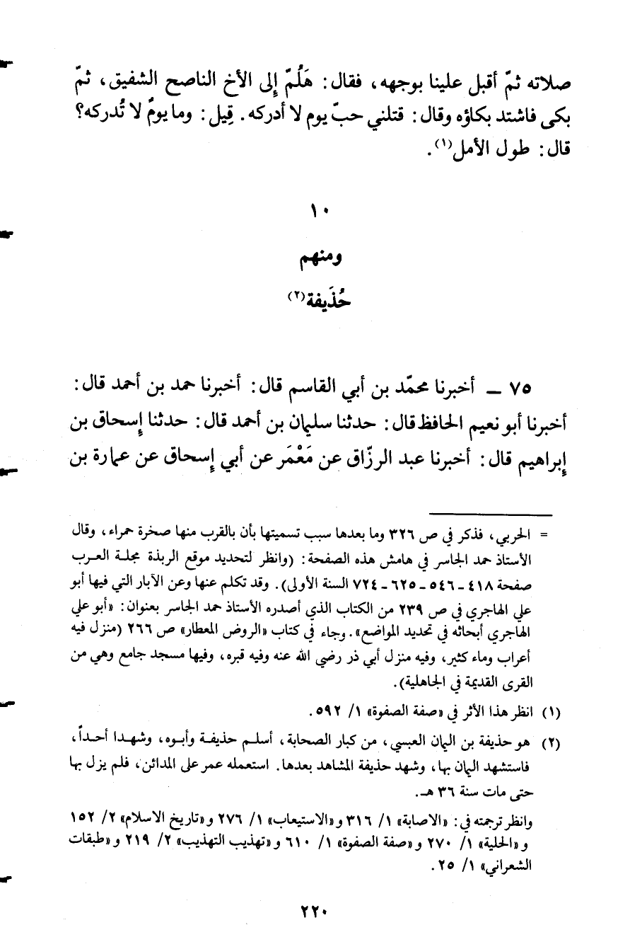 75 - أَخْبَرَنَا مُحَمَّدُ بْنُ أَبِي الْقَاسِمِ قَالَ: أَخْبَرَنَا حَمَدُ بْنُ أَحْمَدَ قَالَ: أَخْبَرَنَا أَبُو نُعَيْمٍ الْحَافِظُ قَالَ: حَدَّثَنَا سُلَيْمَانُ بْنُ أَحْمَدَ قَالَ: حَدَّثَنَا إِسْحَاقُ بْنُ إِبْرَاهِيمَ قَالَ: أَخْبَرَنَا عَبْدُ الرَّزَّاقِ عَنْ مَعْمَرٍ عَنْ أَبِي إِسْحَاقَ عَنْ عمَارَة بن