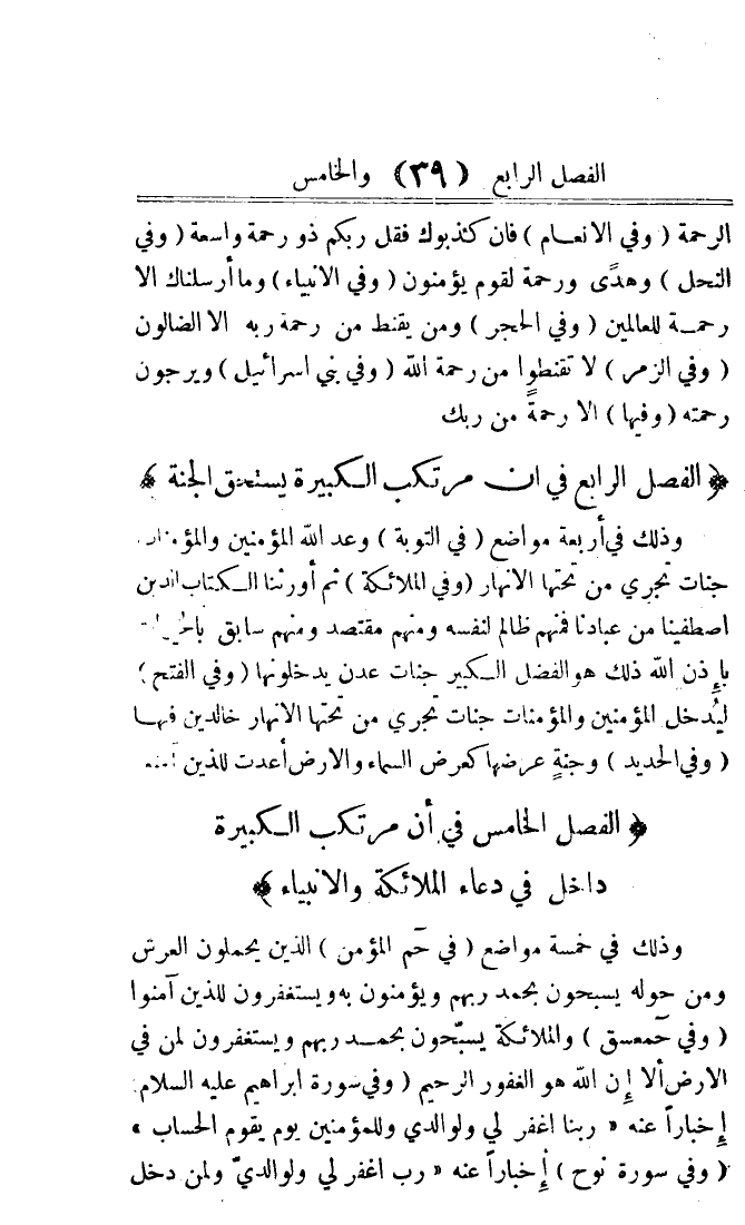 الْفَصْل الْخَامِس فِي ان مرتكب الْكَبِيرَة دَاخل فِي دُعَاء الْمَلَائِكَة والأنبياء)