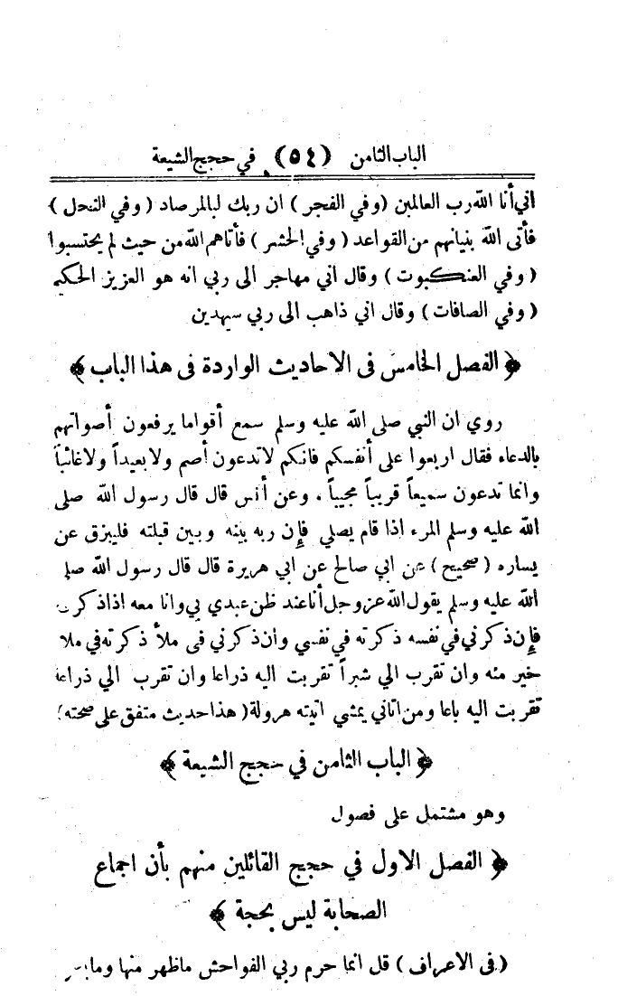 الْفَصْل الْخَامِس فِي الاحاديث الْوَارِدَة فِي هَذَا الْبَاب