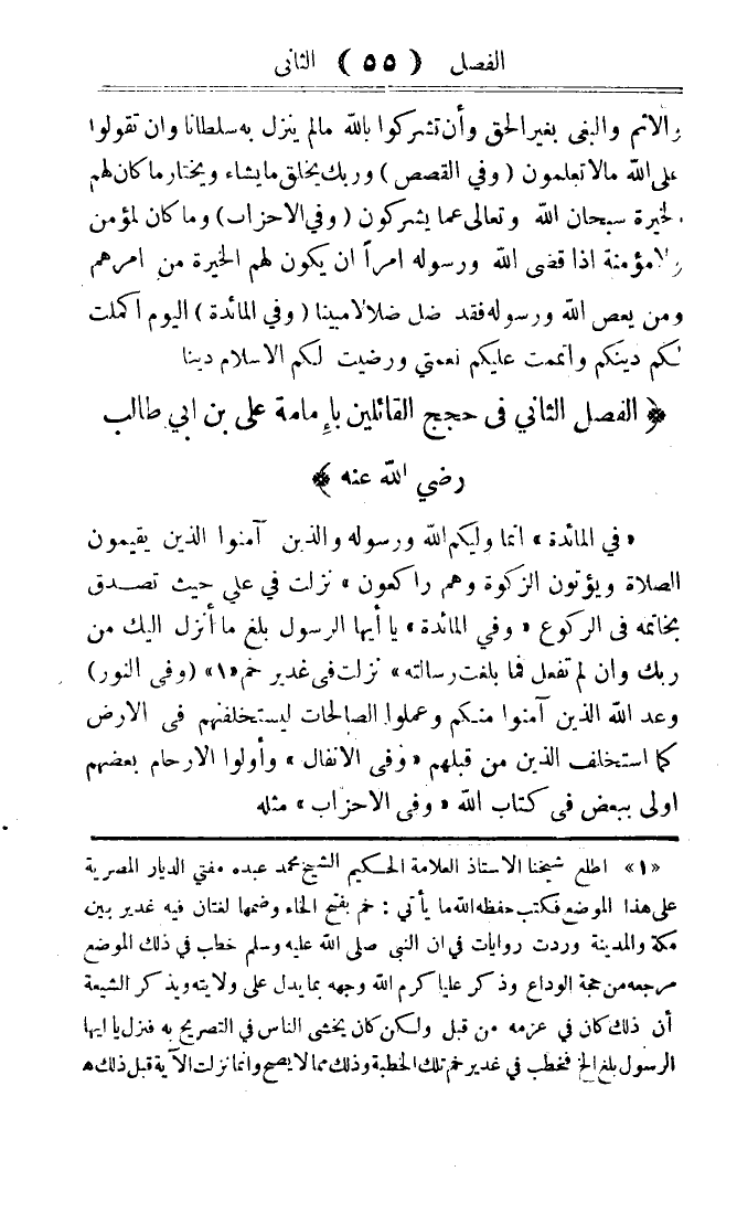 الْفَصْل الثَّانِي فِي حجج الْقَائِلين بإمامة عَليّ بن أبي طَالب رَضِي الله عَنهُ