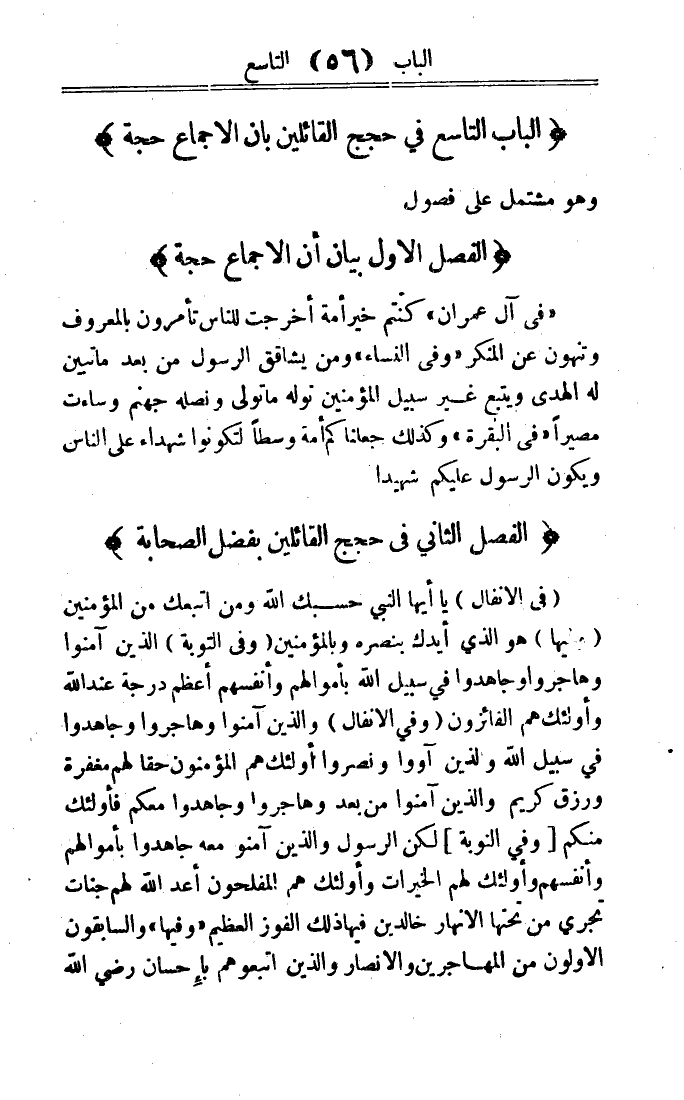 - صَلَّى اللَّهُ عَلَيْهِ وَسَلَّم َ - الْبَاب التَّاسِع فِي حجج الْقَائِلين بَان الاجماع حجَّة - صَلَّى اللَّهُ عَلَيْهِ وَسَلَّم َ -