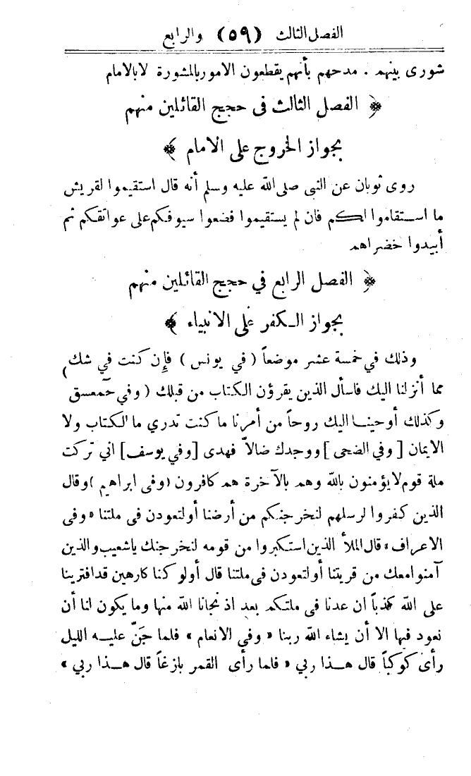 الْفَصْل الثَّالِث فِي حجج الْقَائِلين مِنْهُم بِجَوَاز الْخُرُوج على الامام