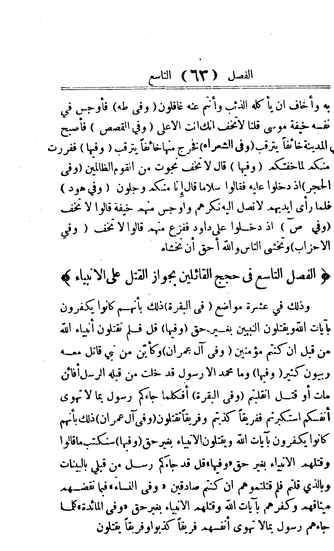 الْفَصْل التَّاسِع فِي حجج الْقَائِلين بِجَوَاز الْقَتْل على الْأَنْبِيَاء
