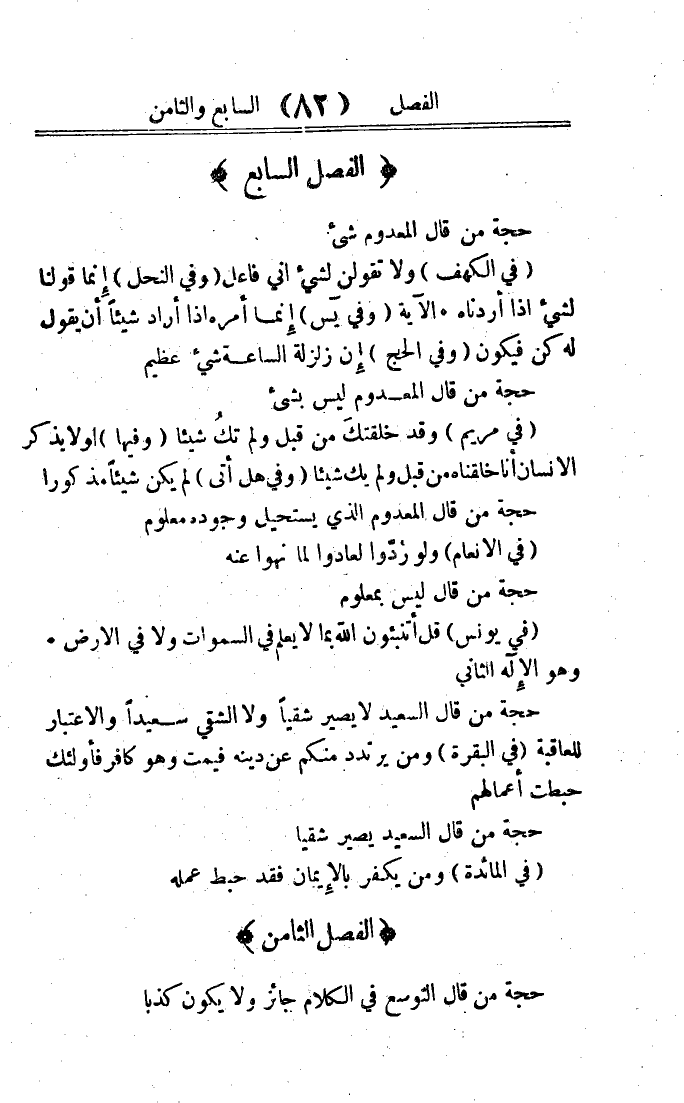حجَّة من قَالَ الْمَعْدُوم لَيْسَ بِشَيْء
