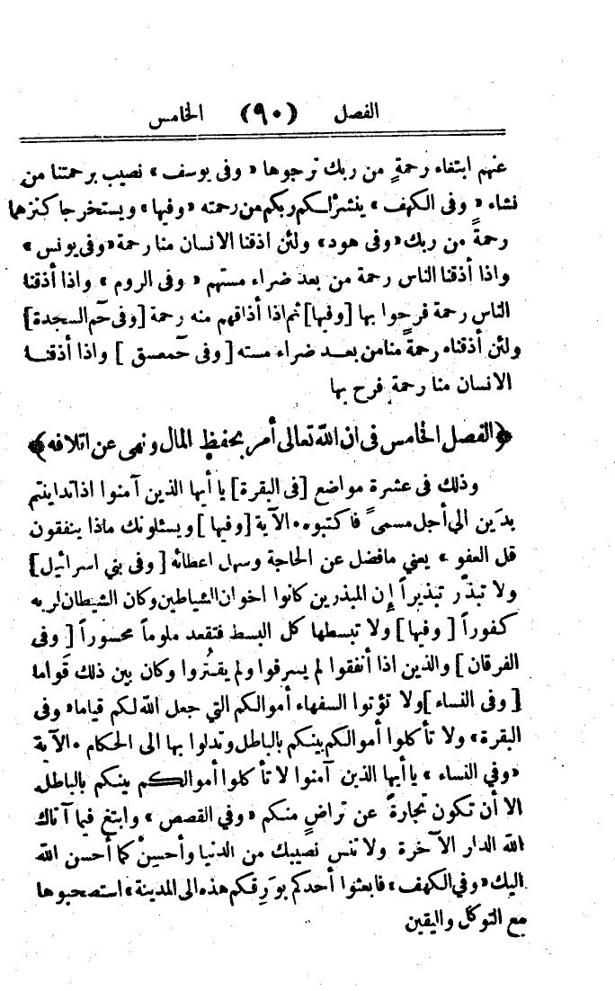 الْفَصْل الْخَامِس فِي ان الله تَعَالَى امْر بِحِفْظ المَال وَنهى عَن اتلافه