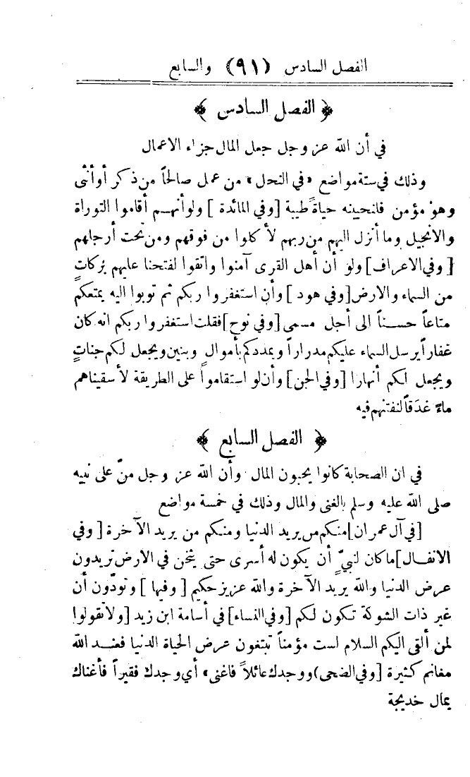 الْفَصْل السَّادِس فِي ان الله عز وَجل جعل المَال جَزَاء الْأَعْمَال
