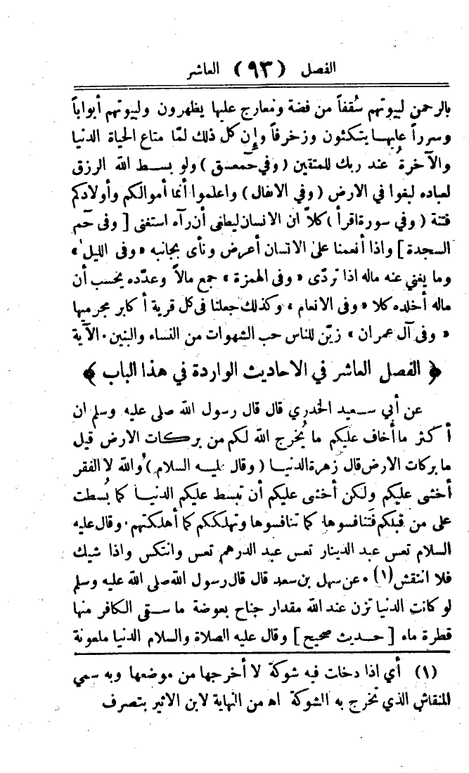 الْفَصْل الْعَاشِر فِي الاحاديث الْوَارِدَة فِي هَذَا الْبَاب