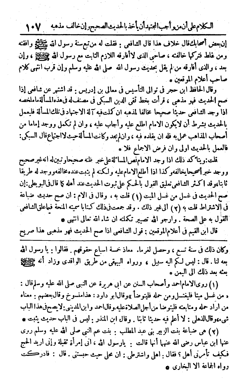 قلت ويتأكد ذَلِك اذا وجد الامام نَص الْمَسْأَلَة على خبر ظَنّه صَحِيحا وَتبين لَهُ أَنه غير صَحِيح وَوجد خَبرا صَحِيحا يُخَالِفهُ وَكَذَا اذا أطلع الامام عَلَيْهِ وَلكنه لم يثبت عِنْده مخالفه وَوجد لَهُ طَرِيقا ثَابتا وَقد أَكثر الشَّافِعِي تَعْلِيق القَوْل بالحكم على ثُبُوت الحَدِيث عِنْد أَهله كَمَا قَالَ فِي الْبُوَيْطِيّ إِن صَحَّ الحَدِيث فِي غسل من غسل الْمَيِّت قلت بِهِ وَقَالَ فِي الْأُم إِن صَحَّ حَدِيث ضباعة فِي الِاشْتِرَاط قلت بِهِ إِلَى غير ذَلِك وَقد جمعت فِي ذَلِك كتابا سميته المنحة فِيمَا علق الشَّافِعِي القَوْل بِهِ على الصِّحَّة وَأَرْجُو الله تصيير تكملته إِن شَاءَ الله تَعَالَى انْتهى