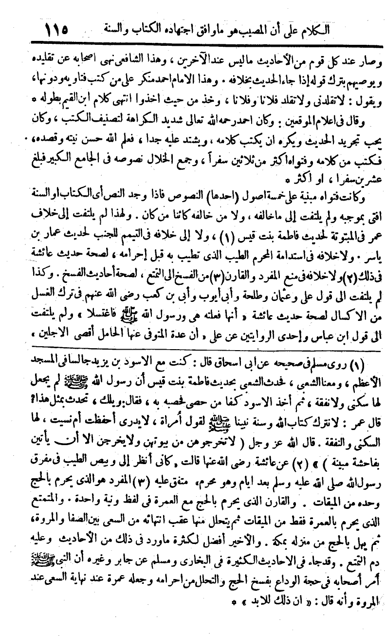 وَصَارَ عِنْد كل قوم من الْأَحَادِيث مَا لَيْسَ عِنْد الآخرين وَهَذَا الشَّافِعِي نهى أَصْحَابه عَن تَقْلِيده ويوصيهم بترك قَوْله إِذا جَاءَ الحَدِيث بِخِلَافِهِ وَهَذَا الإِمَام أَحْمد مُنكر على من كتب فَتَاوِيهِ ودونها وَيَقُول لَا تقلدني وَلَا تقلد فلَانا وَفُلَانًا وَخذ من حَيْثُ أخذُوا انْتهى كَلَام ابْن الْقيم بِطُولِهِ