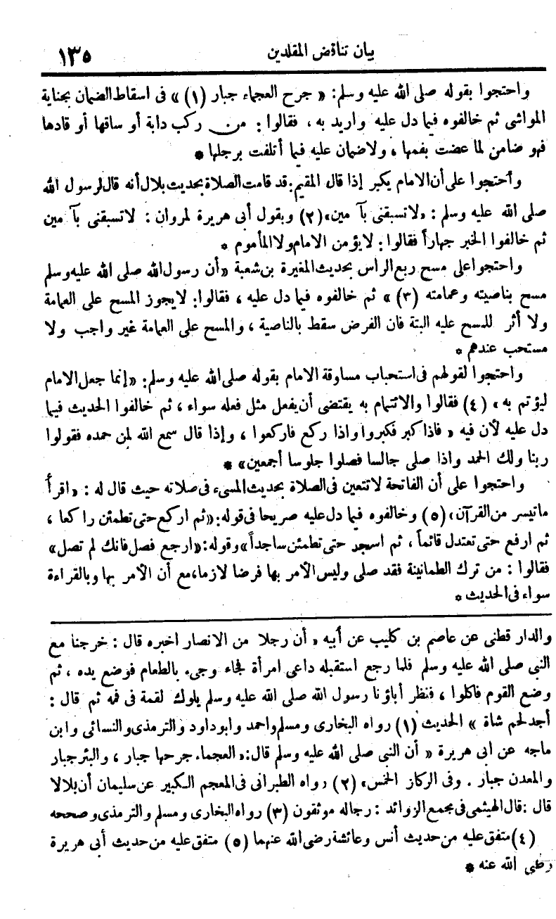 وَاحْتَجُّوا عل مسح ربع الرَّأْس بِحَدِيث الْمُغيرَة بن شُعْبَة أَن رَسُول الله صلى الله عَلَيْهِ وَسلم مسح بناصيته وعمامته ثمَّ خالفوه فِيمَا دلّ عَلَيْهِ فَقَالُوا لَا يجوز الْمسْح على الْعِمَامَة وَلَا أثر للمسح عَلَيْهِ الْبَتَّةَ فَإِن الْفَرْض سقط بالناصية وَالْمسح على الْعِمَامَة غير وَاجِب وَلَا مُسْتَحبّ عِنْدهم