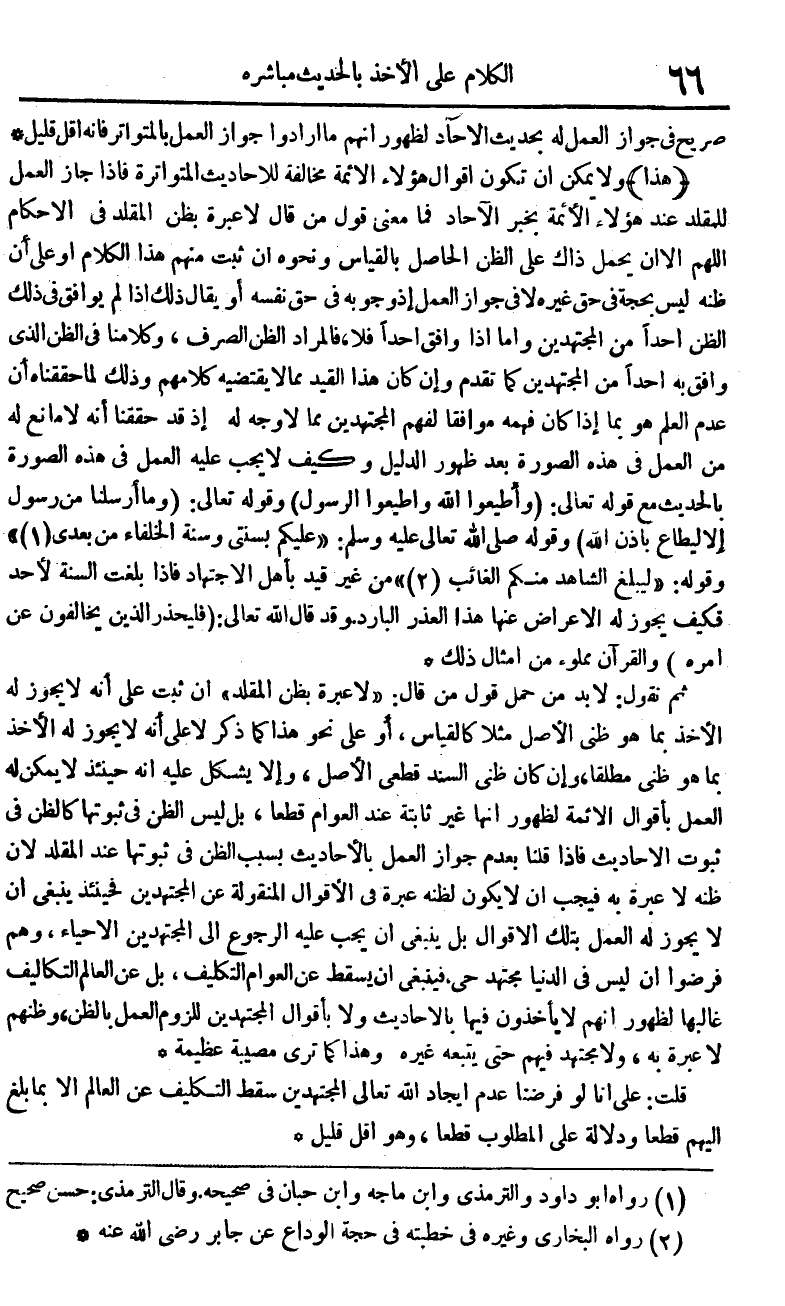 هَذَا وَلَا يُمكن أَن تَقول أَقْوَال هَؤُلَاءِ الْأَئِمَّة مُخَالفَة للأحاديث المتواترة فَإِذا جَازَ الْعَمَل للمقلد عِنْد هَؤُلَاءِ الْأَئِمَّة بِخَبَر الْآحَاد فَمَا معنى قَول من قَالَ لَا عِبْرَة بِظَنّ الْمُقَلّد فِي الْأَحْكَام اللَّهُمَّ الا أَن يحمل ذَاك على الظَّن الْحَاصِل بِالْقِيَاسِ وَنَحْوه ان ثَبت مِنْهُم هَذَا الْكَلَام أَو على أَن ظَنّه لَيْسَ بِحجَّة فِي حق غَيره لَا فِي جَوَاز الْعَمَل إِذْ وُجُوبه فِي حق نَفسه أَو يُقَال ذَلِك إِذا لم يُوَافق فِي ذَلِك الظَّن أحدا من الْمُجْتَهدين وَأما إِذا وَافق أحدا فَلَا فَالْمُرَاد الظَّن الصّرْف وكلامنا فِي الظَّن الَّذِي وفْق بِهِ أحدا من الْمُجْتَهدين كَمَا تقدم وان كَانَ هَذَا الْقَيْد مِمَّا لَا يَقْتَضِيهِ كَلَامهم وَذَلِكَ لما حققناه أَن عدم الْعلم هُوَ بِمَا إِذا كَانَ فهمه مُوَافقا لغهم الْمُجْتَهدين مِمَّا لَا وَجه لَهُ إِذْ قد حققنا أَنه لَا مَانع لَهُ من الْعَمَل فِي هَذِه الصُّورَة بعد ظُهُور الدَّلِيل وَكَيف لَا يجب عَلَيْهِ الْعَمَل فِي هَذِه الصُّورَة بِالْحَدِيثِ مَعَ قَوْله تَعَالَى {وَأَطيعُوا الله وَأَطيعُوا الرَّسُول} وَقَوله تَعَالَى {وَمَا أرسلنَا من رَسُول إِلَّا ليطاع بِإِذن الله} وَقَوله صلى الله تَعَالَى عَلَيْهِ وَسلم عَلَيْكُم بِسنتي وَسنة الْخُلَفَاء من بعدِي وَقَوله ليبلغ الشَّاهِد مِنْكُم الْغَائِب من غير قيد بِأَهْل الإجتهاد فَإِذا بلغت السّنة لأحد فَكيف يجوز لَهُ الْإِعْرَاض عَنْهَا هَذَا الْعذر الْبَارِد وَقد قَالَ الله تَعَالَى {فليحذر الَّذين يخالفون عَن أمره} وَالْقُرْآن مَمْلُوء من أَمْثَال ذَلِك